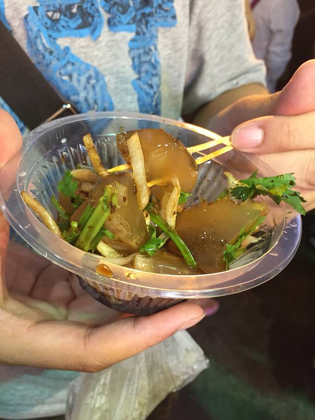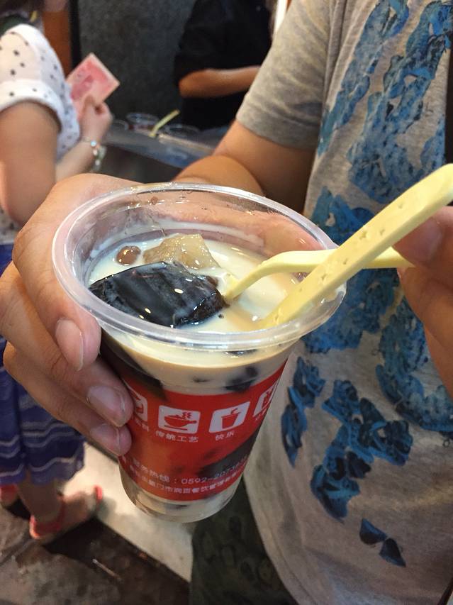 2、八婆婆烧仙草旁边有很多小店,台湾疯狂烤翅、大肠包小肠、土笋冻、金包银等等。前两样因为我们即将启程去台湾所以没有尝试,后两者其实个人感觉每家店的味道都差不多。金包银里面是梅菜馅,挺喜欢的。土笋冻尝了一口其实完全吃不出虫子味但是还是过不了自己心里那关哈哈。
