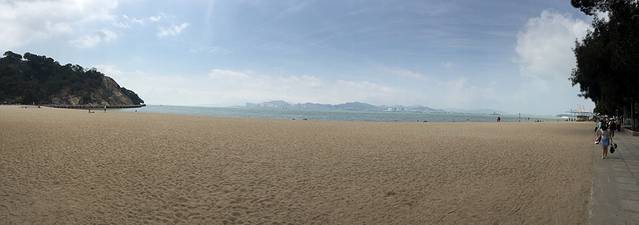 曾厝垵下车旁边有个小沙滩,在炮台和它之间有个海边栈道。海风很舒爽。