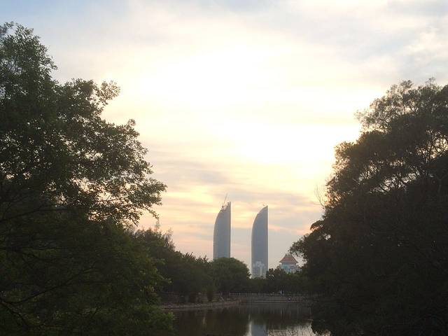 厦大中心的芙蓉湖旁,行至此处太阳已渐渐落下