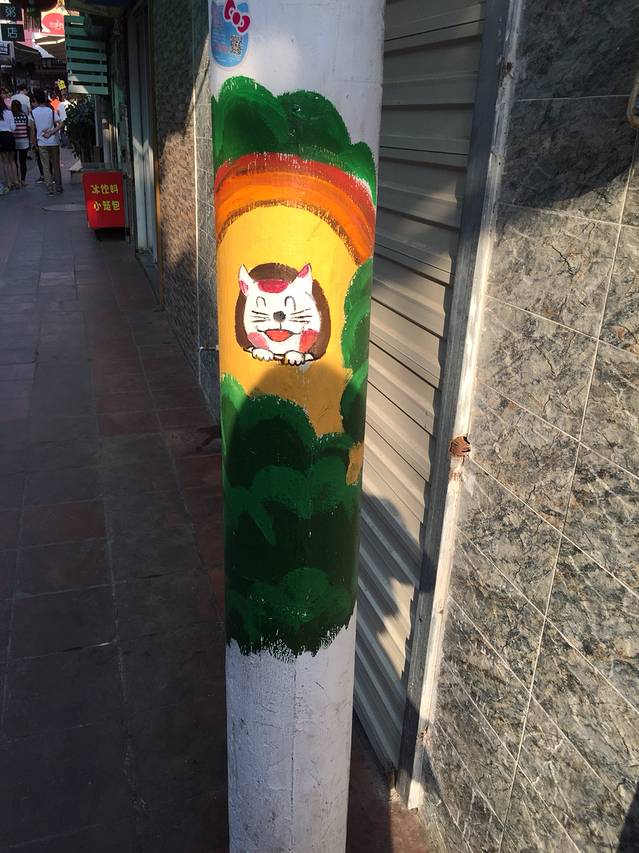 放下行李后步行走到酒店对面的“猫街”,很萌,里面到处都是猫的元素,包括墙上的涂鸦,邮筒垃圾桶电箱等都是猫咪的图案,很有特色。附近还有咖啡一条街,都是小资的咖啡店。