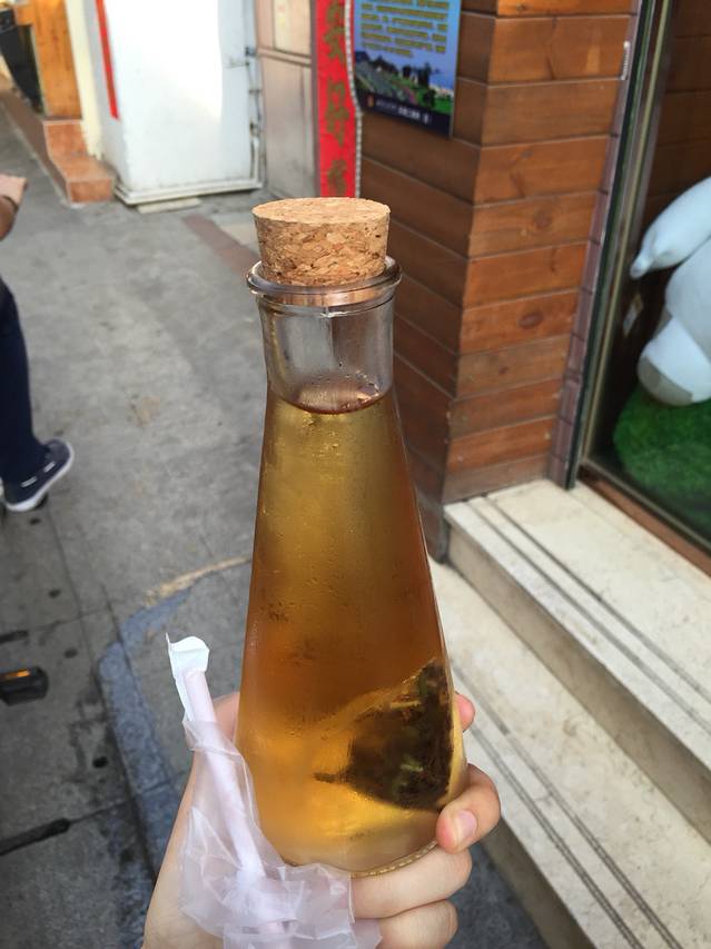 还有一家一杯茶堂,是用玻璃瓶装着茶包,因此喝完之后倒水进去可以继续泡,感觉喝完之后玻璃瓶可以用来插花。这家店也有章盖~