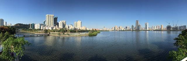 站在桥上看筼筜湖,波光粼粼,而且湖面一片蔚蓝