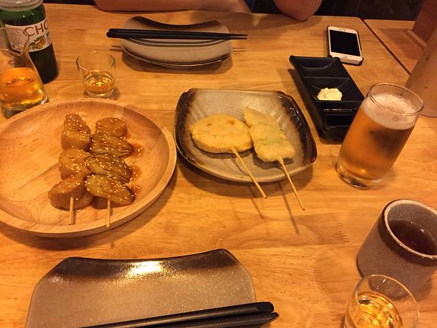 吃完晚饭可以去万达影院看场电影,也可去逛逛然后吃点甜品,还可以像我们一样来到附近的一家居酒屋喝点小酒~这家居酒屋老板娘是个日本人,氛围很好,串烧也真的非常棒!