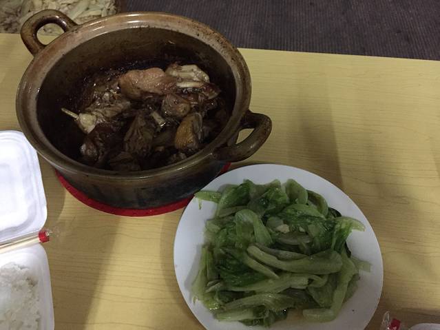 这家店只做姜母鸭,两个人吃了半只鸭加了鸭胗鸭心,还要了一个炒生菜,人均29左右。吃的时候看见这家店有真空包装的鸭子然后顺丰小哥过来收了货,还看见有居民买了这家店的呀鸭子回家自己热热吃,既然有本地人光顾那感觉应该还是挺地道的。