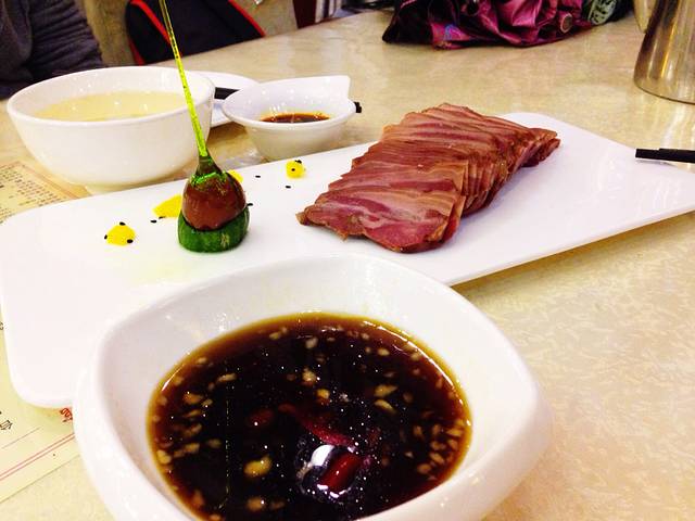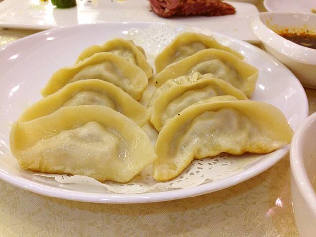 我们就吃了碟水煮饺子和煎饺以及一碟卤驴肉。水煮饺子是荠荠菜大肉馅的,好吃不腻,煎饺是海鲜味的,外皮煎的很香呐~