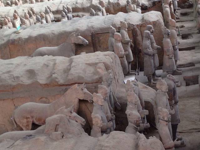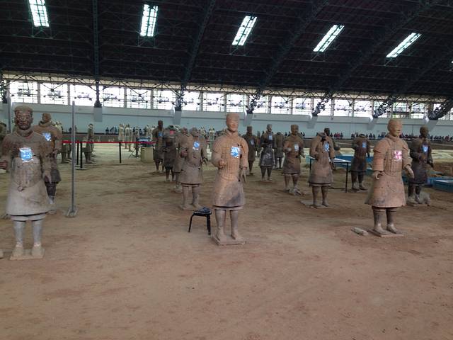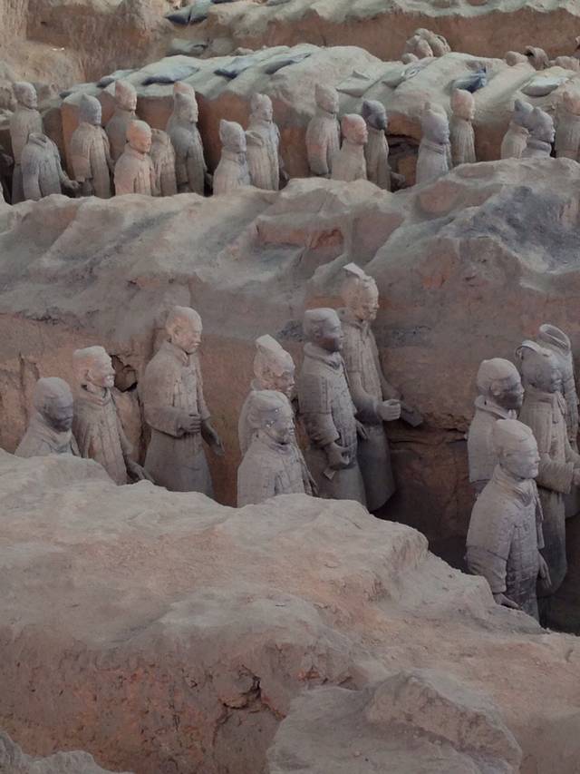 这些是修复后的兵马俑,貌似都拿保鲜膜之类的东西包着