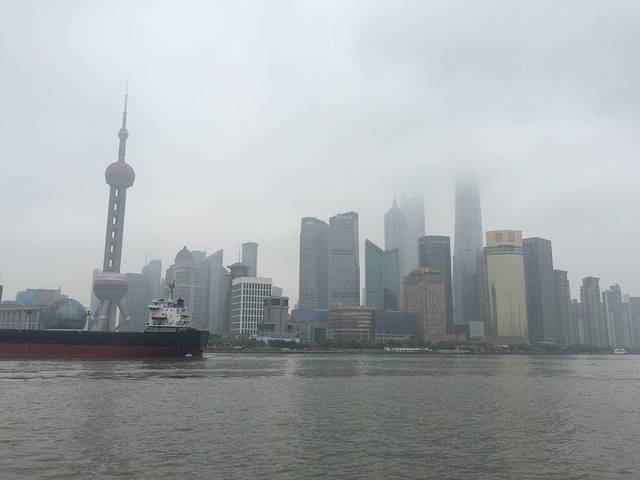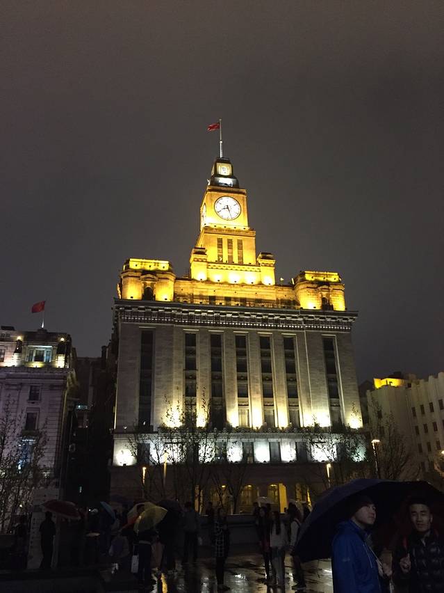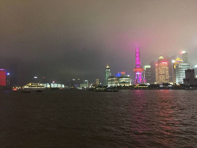 天阴阴的,还有点下雨,东方明珠白天还能看到三个球,第二天晚上我们去看夜景,最多只能看到两个球了。为了看他整点闪,在江边伴着小雨冷风溜达了好久,到了九点,真的闪了……嗯,闪的很无趣。
