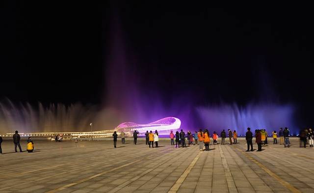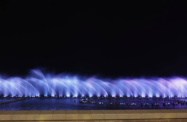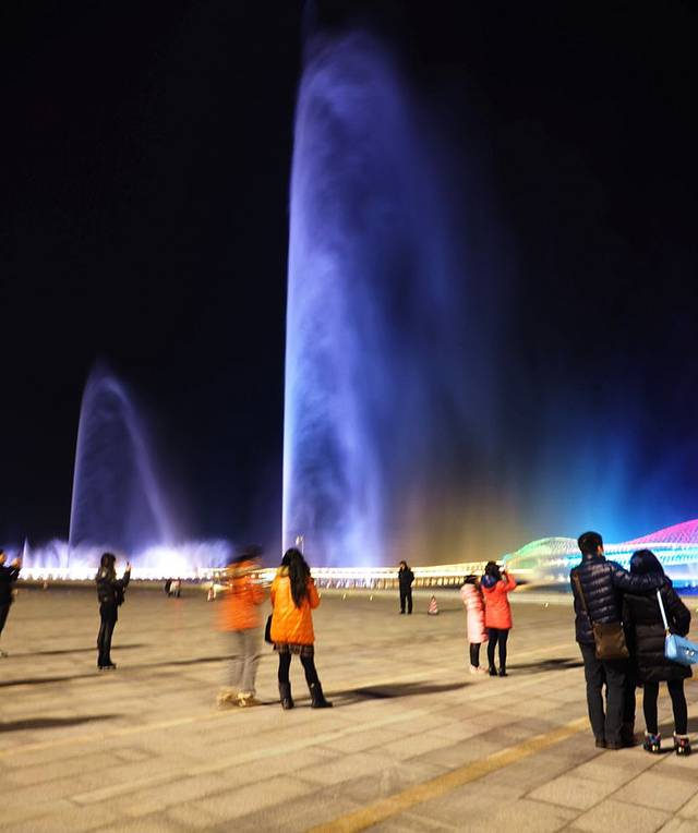 亮点就在这儿,120米的喷水柱,也许是苏州最高、最美的音乐喷泉了吧。