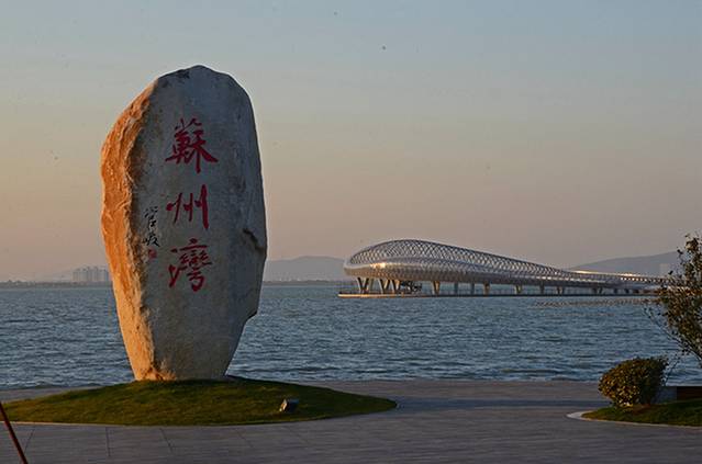 苏州湾,美丽而亲切的名字。看,不远处就是两个“8”字型的阅湖台,蜿蜒曲折,漂浮太湖。