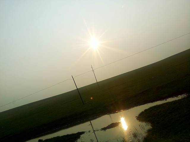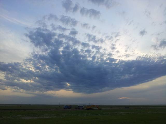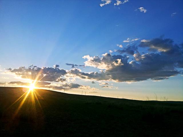 傍晚时分开到锡林九曲,到了锡林郭勒才知道之前那段路上见到的根本不算是草原,最多算戈壁滩,天气也变好了,又见落日,烧烤party开始了