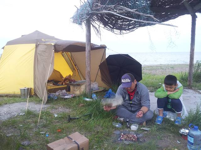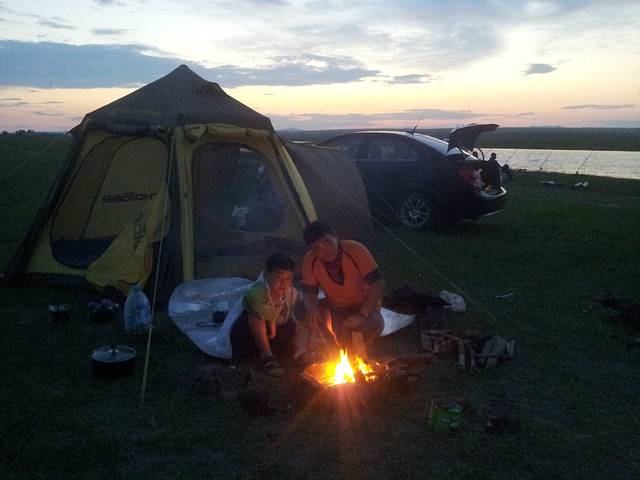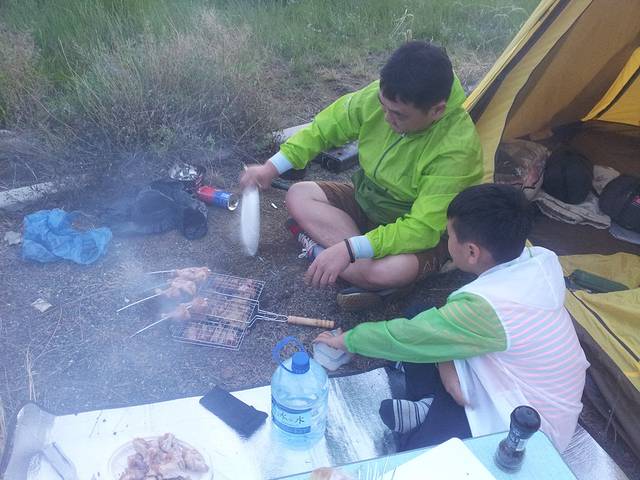 睡眼朦胧中发现正在日出,却懒得起床,隔着帐篷的网眼随便拍了张敷衍了事。。。一大清早设置机关抓鱼的父子俩,收获不小哦,全是泥鳅,不要被我那些裙角飞扬骗了,那只是上镜装,露营的时候这才是我的模样,不然怎么跟小伙伴在烈日下玩耍呢,韩国男人深信吃泥鳅对男人大补,于是早饭是泥鳅拉面,汗。。。蜜辣烤翅,用阿尔山纯天然蜂蜜做的名副其实,火大了点儿,五块钱的大冰西瓜很甜,庆幸保温袋里冰块还没化,晚上做点米饭用剩的五花肉和各种菜韩式拌饭,不知还能不能吃下炸鱼,本来这次自驾游还有个重要目的就是减肥。。。还有人信吗?