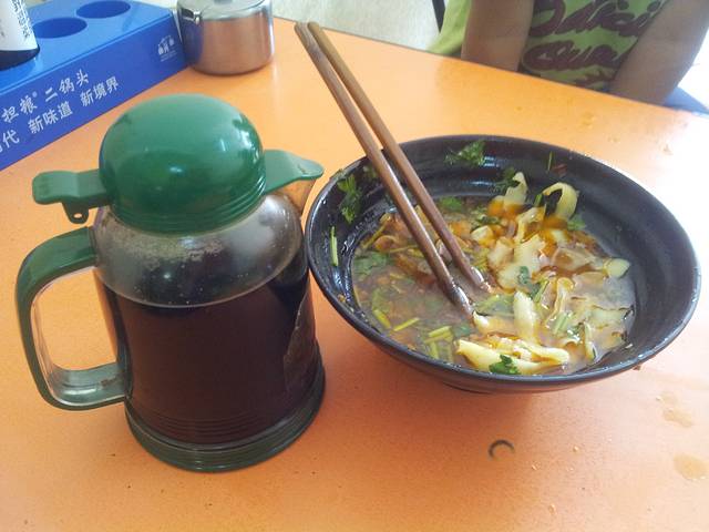 清早吃了碗山西刀削面,外加一个驴肉火烧,不愧是山西,面馆的醋瓶子都超大的。