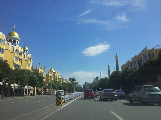看罢沙漠,下午出发去呼和浩特,一路上阴山山脉大青山始终在侧,很是壮观,落脚伊斯兰风情街,订的酒店是九鹏,设备老旧但位置就在清真大寺和伊和宫对面,附近还有个很大的天主教堂,美不胜收,附近走两步就是牛街,美食汇集一次吃个够。领略了伊斯兰风情,还有一项重要日程,那就是吃,酿皮,焙子,各种做法的羊肉羊杂哇咔咔,吃完以后发现牛街饭店其实挺贵的,这边羊肉的市场价格也就二十多一斤,饭店里做好的成品每斤五十左右,于是我们决定第二天出发前直接去肉市买小肥羊,露营的时候自己烤着吃个够。