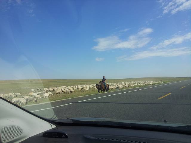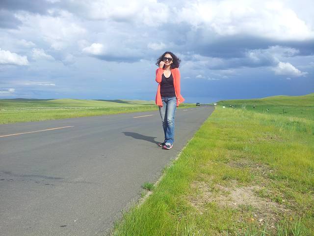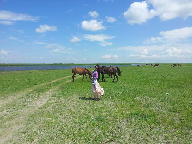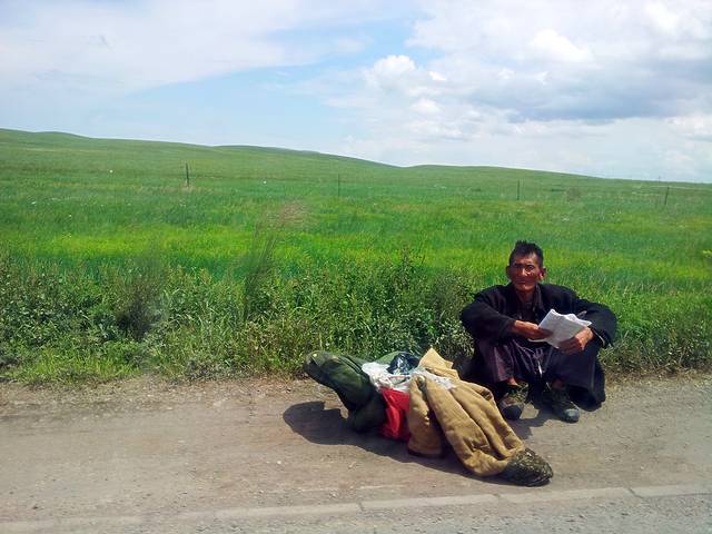 离开酒店去吃了蒙氏早茶,隆重推荐,不点肉类的话,一家人三十多就可以吃得心满意足,剩下的奶茶装进保温杯带走,酸奶饼味道独特又买了些在路上吃。一路上风景越来越好,随处可见微软的开机画面,路边等车的一位老牧民,坐在公路边上,身边放着个布袋,气定神闲地看着一本书,不知原由地心里震撼了一下,精神的强大和富有,才是人生的最高境界。就在省道101上,我第一次尝试公路照。