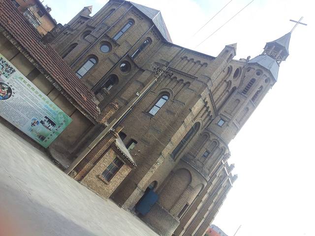 各地的古城卖的东西都差不多,逛起腻味,上城墙进戏院啥的必须买套票,住的地方一般都可以买到稍便宜点的,一百几一个人,我们对这种不太感兴趣没买票。附近有个天主教小教堂还满文艺,按摩店门前的大妈都熟练用韩语拉客,老公各种汗,老街的建筑诉不尽沧桑,怎奈民风不古宰客成风,千万别在古城正街上吃饭,我们进了一家叫东福顺的黑店,炒菜是微波炉加热的里面凉的,一小盘香辣牛肉108,汾酒疑似假酒,孩他爸喝了点就不适不敢喝了,再有去的朋友多加小心。