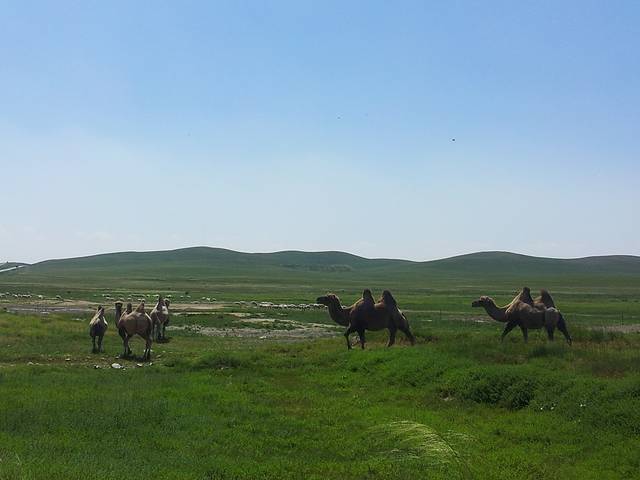 一早吃了羊汤煮的拉面,有只狗狗昨天起就一直守在我们附近,香喷喷地啃着儿子啃过的羊骨头,告别狗狗继续前进,路遇骑马的牧民很帅,有种骑摩托的牧民无法超越的气质,上午晒到无法遁形,因为计划在锡林九曲露营,所以决定在苏尼特左旗开房,洗个澡简单休息下再走,镇上路边的宾馆都很便宜,20块一小时,应有尽有还有WIFI,休息到中午吃了饭才动身,晚上还得烤羊排不然冰块都该化没了