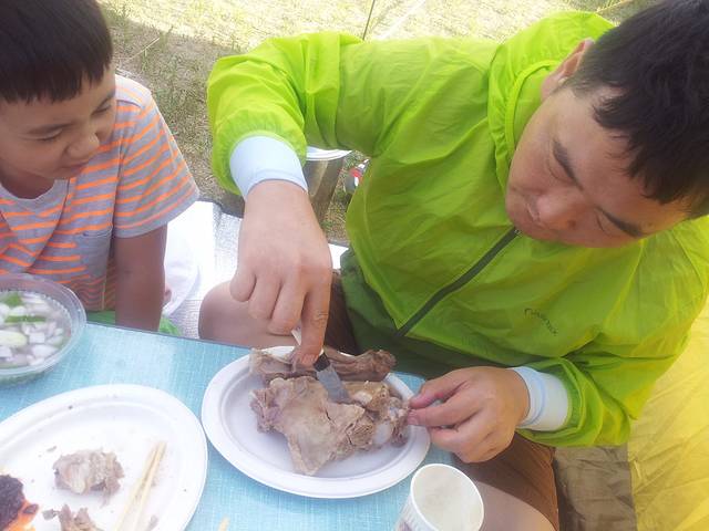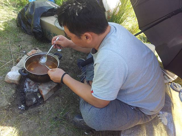 昨晚到得太晚,睡饱了才起床,去酒店旁边的超市买了一堆好吃的准备露营,连日羊肉也该歇歇了,五花肉和鸡翅登场了。一路上从戈壁到草原,酒店休整了几天之后,又开始想念露营,偶遇一条小河,果断在河边安营扎寨,羊儿马儿不时过来喝水很有意思。今天的晚餐是烤五花肉搭配鸡腿菇。昨天起车轮一直发出声响,经确认不是轮胎缝卡石子,父子俩一起卸了轮胎终于发现了问题,是刹车片间隙卡了石子,大功告成,很喜欢看这父子俩一起干活儿的样子。