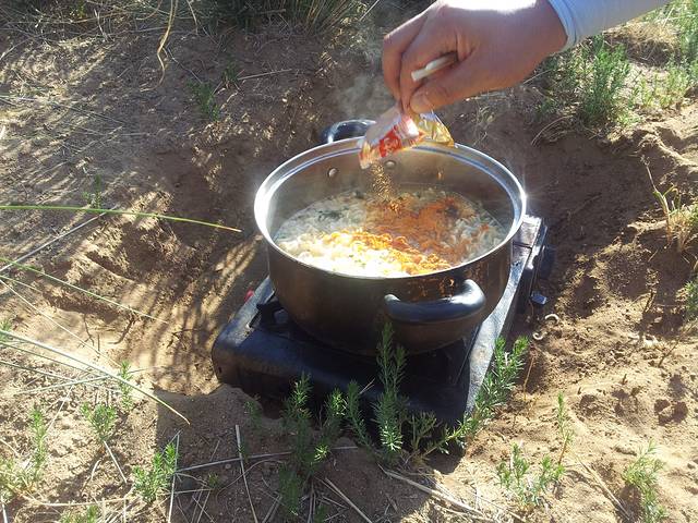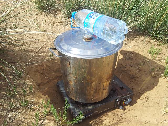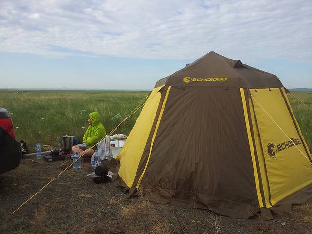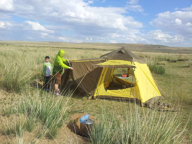 不知不觉到了下午,草原初见端倪,开到了苏尼特右旗,迅速确定了露营地址搭好帐篷开始了本次自驾游的第一次露营,开始准备羊肉大餐,现在想来有点后怕,那地方杳无人烟,其实应该再往前走走离牧民的家近些再安营扎寨,但为了早点吃到小肥羊,我们略急了一些,晚饭煮了条前腿吃,超鲜美