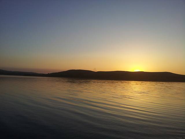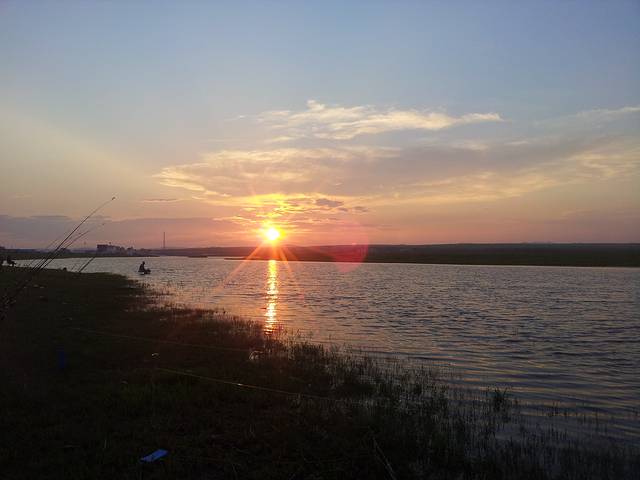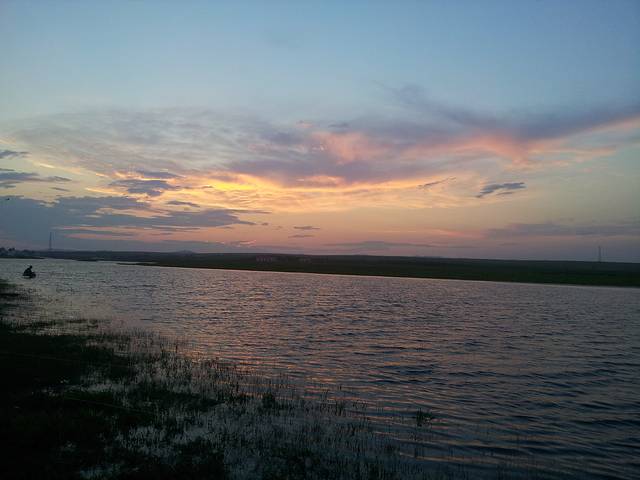 多伦湖,夕阳西下月如钩