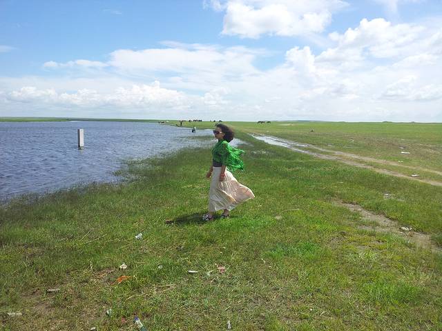 呼伦湖和我们想象的不太一样,从金沙滩这边进去的,水并不清澈而且碧绿泛着泡沫,一种长期没打扫的鱼缸味儿扑鼻而来,呼伦湖完全有着海的大气和风范,岸边海风习习,波涛阵阵。烧烤走起。