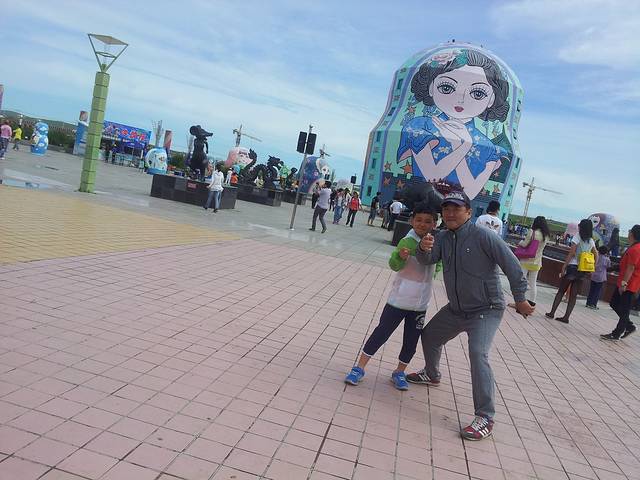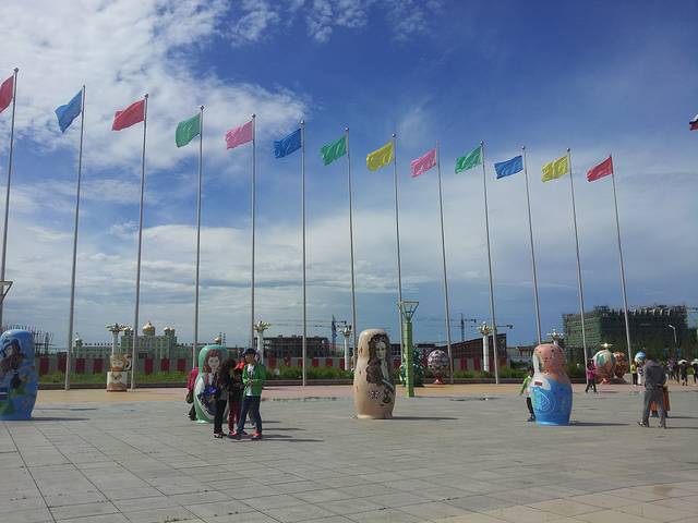一夜狂风没睡安稳,早上六七点的样子暴雨来临,帐篷被吹得快飞起来了,一家人以迅雷不及掩耳的速度合力搞定了帐篷,收拾了细软,经过多次露营,一家人配合得相当高效默契,仿佛训练有素的士兵,躲进车里看雨,雷电交加相当震撼。看够了雨,吃了拉面,动身向满洲里进发,刚到满洲里就去了套娃广场。。。很多人,以及大得莫名其妙的套娃,遍布。。。猛玛象公园。。。也是巨大,这边属于旅游热地酒店价格偏贵,但离开市区也有200左右的,这次的酒店也没提前预定,在满洲里市区外的扎赉诺尔街边随便找了家。