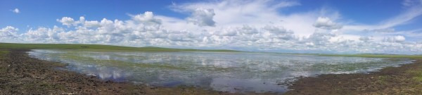 多伦湖继续露营一天。天气放晴,必须使用全景模式来张全的,可惜美好的景色被我们的一片狼藉破坏了,趁着天气好抓紧晒衣被,游客们见到我们先是吃惊,接着看了下我们渝字开头的车牌,投来理解和同情的目光