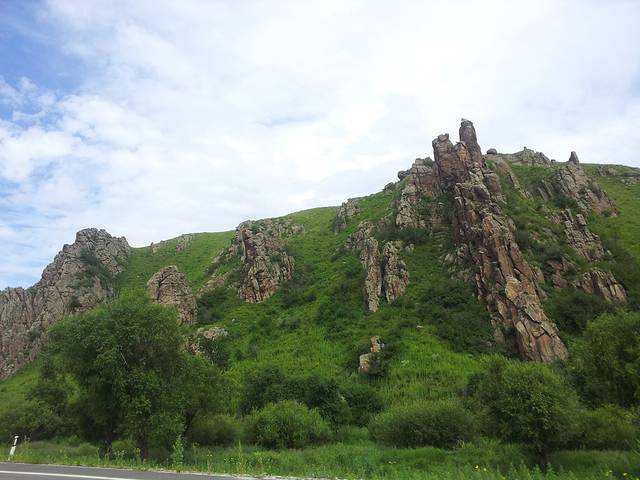 早起之后和牧民一家依依惜别,老公和牧民大哥之间的称呼也从朋友变成了兄弟,就此别去。一天中景色变换,从草原到深山,自驾十天来最艰辛的一天,s303路超烂的,做攻略的时候知道路烂没想到这么烂,最烂的地方全是坑只能时速十公里,不过景色确实赞,人生就是这么纠结,往往越凶险风景越独到,但还是不建议大家走这条路,完全没有手机信号,万一车坏了或者出点啥事儿那真是叫天不应叫地不灵。终于在天黑前到达阿尔山市,这次没提前订酒店,路边全是酒店随便住了一家。
