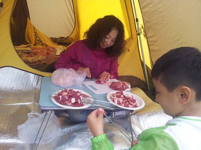 帐篷搭到一半突降暴雨,一家人全都湿透,居然淡定地在帐篷里涮起了羊肉,没有抱怨只有欢乐,只想让孩子知道,我们无法为他的人生呼风唤雨,希望他不管境遇如何都有快乐起来的能力。