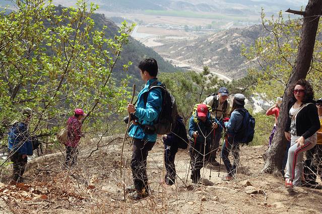 我们今天穿越的是大红螺山,一路上没有路,没有石阶,就是在山间小道和峭壁上穿行,很多地方都需要绳索,十分的艰难险峻。早6点半从沈阳出发,11点开始爬山,18点才从山上下来,刨去午餐一个小时,爬了六个多小时。体力达到极限,当然在攀登的过程中险象环生,好在有向导和两名专业的领队,还有大家的互相帮助和扶持,最后所有人安全下山,留下了十分难忘和珍贵的回忆!