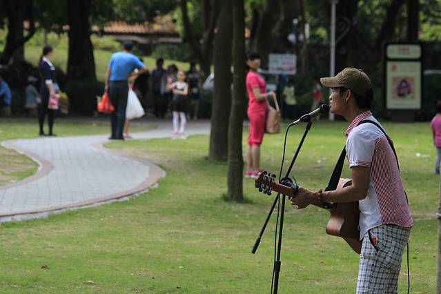 在公园里看到各种花各种颜色的蝴蝶,还有流浪歌手动情地唱着许巍的歌~
