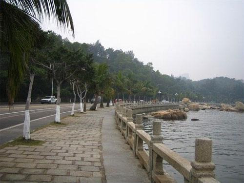 从山丘下来后,我们直奔情侣路,其实离得很近啦,十分钟就到了。不过我们就不去渔女那凑热闹了。海风很舒服,有不少人脱了鞋下沙滩那玩水,海边石块比较多,但还是挺美的。很适合拍偶像剧,但是我们没有女主角。真是个悲伤的故事。