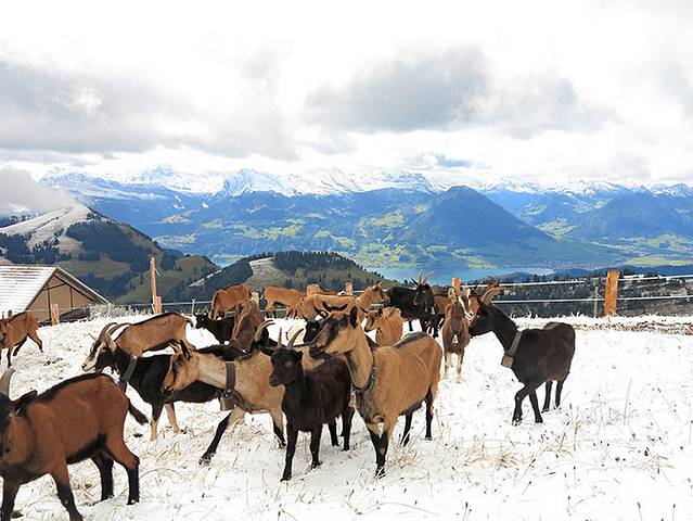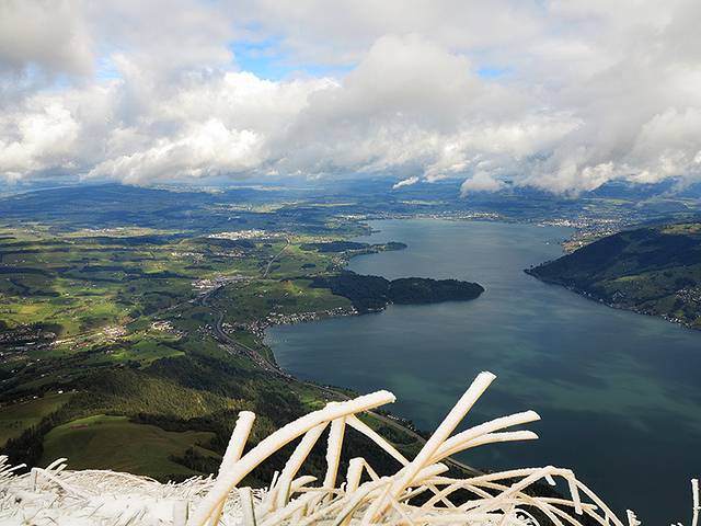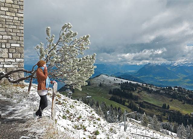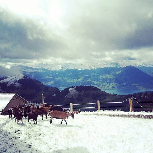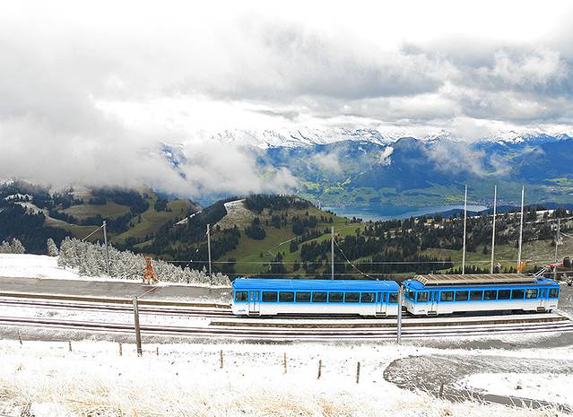 从网上的功略看,从Luzern去Rigi似乎很复杂,亲身体验后才发现其实很简单。推荐线路是,先到火车站对面的码头座游船,早上第一班9.45出发。上船后一路欣赏Luzern河的风景,船到Vitznau站下,下船直接换小火车就轻松上山了。不必担心找不到小火车,因为出了码头就是,另外,其他游客都是去同一个方向,跟着大部队走,一定错不了。小火车缓缓沿着陡坡上行,沿途风光从春秋季节慢慢变成积雪,穿得不够多的话,就要等着挨冻了。
