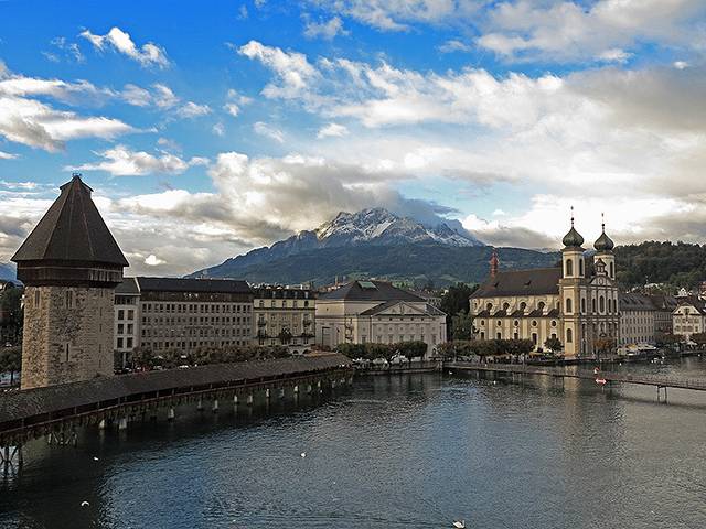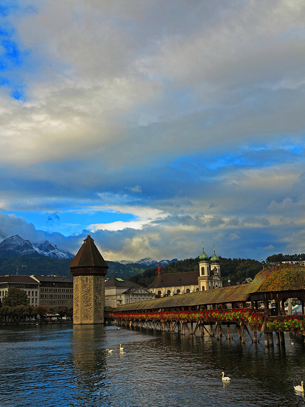 Luzern最知名的景点,当然是在Reuss河北面的老城了。在沿河的众多木桥中,古老的Chapel Bridge就位于老城的入口处。原修建于1333年,是欧洲最老的、有顶的桥。不过,后来因为火灾,有一大部分是在1933年重建的。一桥之隔,诸多景点和博物馆就位于老城的河对岸。误打误撞,我订的酒店,就在老城里。这个选择,让人惊喜,价格也不贵,值得推荐!不仅住在了风景里,而且这里离火车站和码头步行只要5分钟,相当方便。