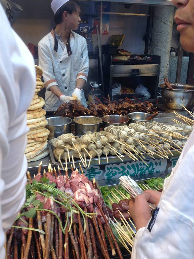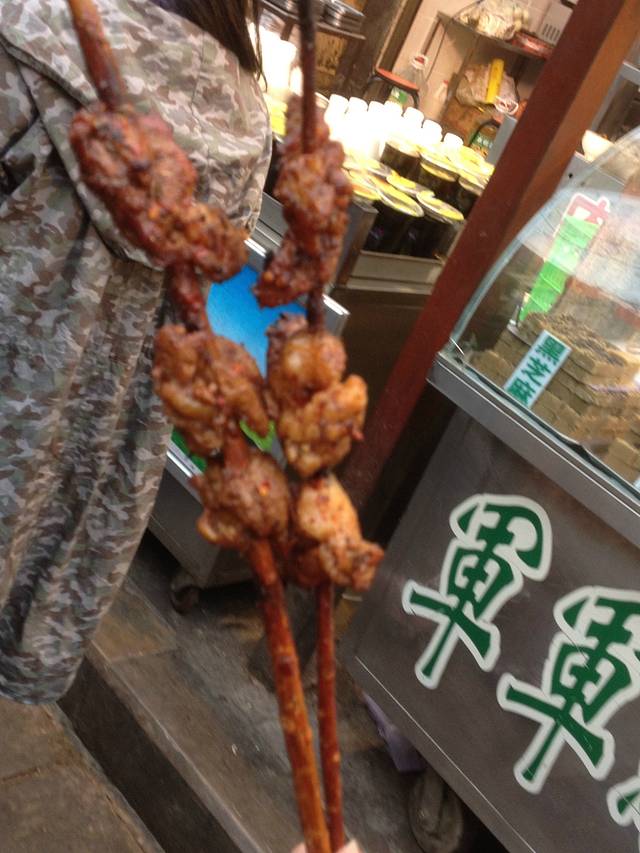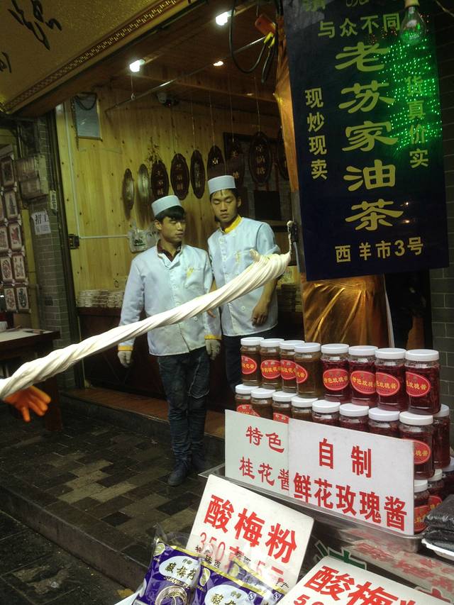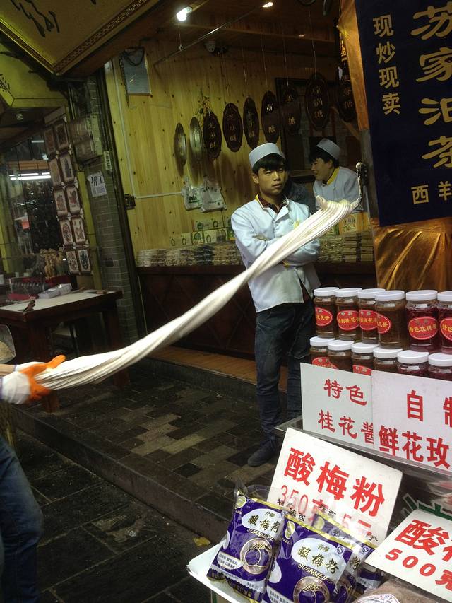 去往回民街的路上,各种高中档的百货商店,我们连看不看。直接打听着杀到了回民街。第一眼看到回民街,心里乐开了花,好多好吃的哈哈~ 减肥神马的靠边站啦~来之前看了评价,都说大皮院好吃的多,我们不太饿,就基本把回民街转了一遍才选择在百家吃羊肉泡馍。闺蜜很主动的要求我们自己撕馍,结果真到她撕的时候发现这是个耐心活哈哈,好不容易两个馍都撕好了,后来看到别人撕的,一点一点的,真的是佩服的不行不行了。终于来到西安第一口喝到的正宗的羊肉泡馍,真的很好喝,我们平时喝的那种羊肉的纯度和西安的一比根本不在一个档次上,被甩出了好几条街。一碗羊肉泡馍两个人分着吃,想留着肚子吃别的,结果还是8分饱了。出来走走又吃了涮肚,这个一般,酱我们吃不惯呢。在主路上,还买了一个玫瑰花形状的棉花糖,回头率超级高,味道嘛一般般哈。但胜在颜值爆表有木有~