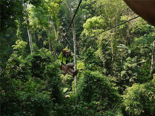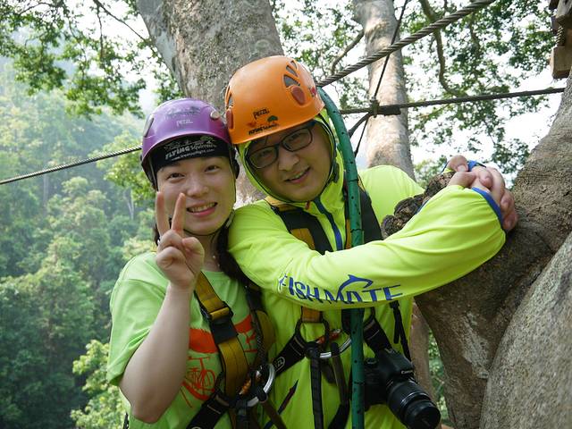 飞跃一定要赶早,太阳还不大,而且头一批的人一般比较少,如果人多了,就要等很久,树上的平台毕竟小嘛。另外建议是玩个普通项目就可以了,因为头几次飞跃确实挺刺激的,但飞个20个左右你早麻木了,笔者是飞了三个,后面就没啥感觉了,包括400米和600米的,都没有前三个刺激,至于独木桥,滑板,自行车,爬网,垂直降落,都是没有太多花头的项目,拍照片还行,刺激度就低了点。