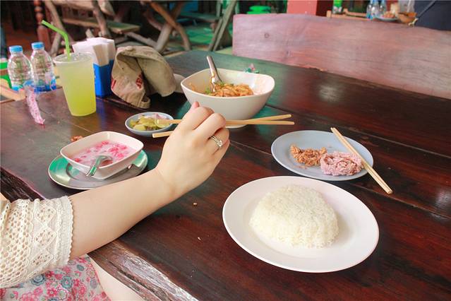 这,,,让我怎么说呢,我两都是吃货,本是留着口水奔着泰国菜去的,但在清迈期间吃过最好吃的就是芒果糯米饭了,其他的泰北菜实在是让笔者无语啊,尤其是正宗泰北菜,香茅的那股肥皂水味道啊,要人命啊,感觉饿了好几天。回国后来了碗馄饨,笔者和老婆才算缓过来啊。但飞机上的几个台州小姑娘和北京姑娘对泰国菜居然赞不绝口,这,,情何以堪(不过回想起来,也许他们都吃的是夜市菜,已经非原汁原味泰北菜)。我和老婆都觉得改良过的泰国菜好吃多了。