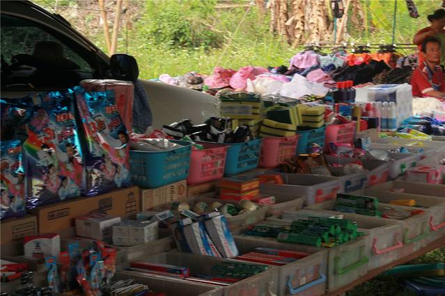 清迈到拜县的路还真不是盖的,连老婆长年都没晕车的人都撑不住了。我们上车前,就看到两老外在那嗑药,心里一阵悸动,赶紧的在火车站周围找药,结果没地方买,靠。一路上老婆算是把胆汁都吐出来了,还一个劲的怪我,安排拜县个毛。我是撑了一路没吐,不过我想再有个半小时,我也撑不住了。所以下车第一件事,就是买回去的晕车药。提醒各位看官,千万别高调哦,10泰铢10粒的晕车药,可不能省啊。