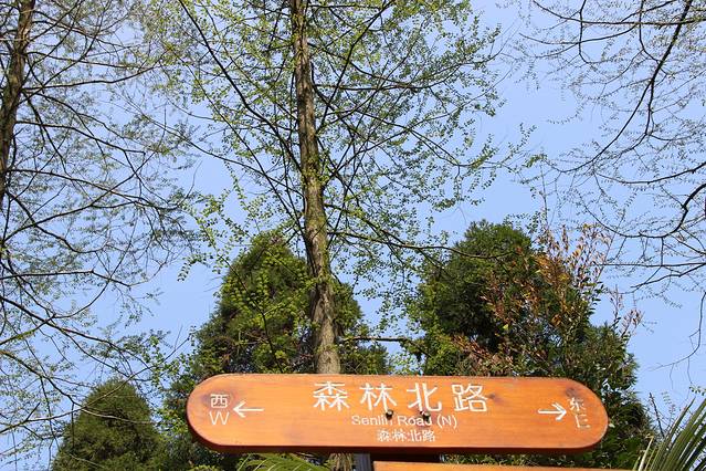 公园里是有一些这样的指示牌的,有一些会写距离,比如500M。比如,路牌上写说1号门到2号门500M。我们在2号门还掉自行车,打算从1号门出去,走了好久好久,绝不止5分钟。从1号门外面的马路上走到2号门停车站说是600M,也是认认真真走了好久。