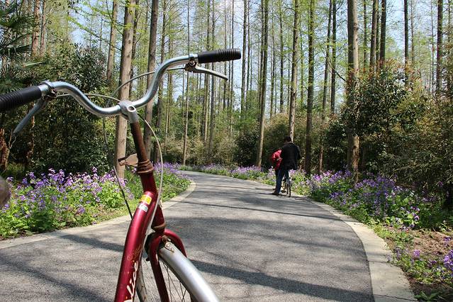 公园里到处是很高大的杉树,骑车到小路上,遇不到几个人,要的就是远离人群的感觉。