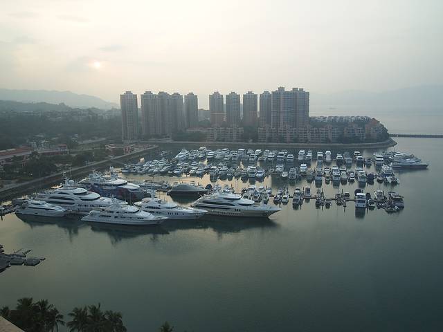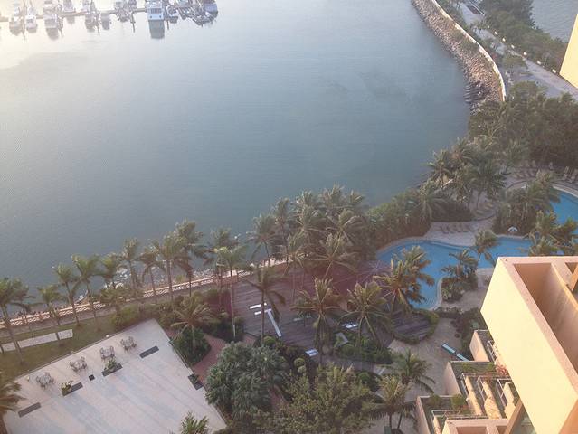 早上拉开窗帘的无敌海景,旁边是游艇会。