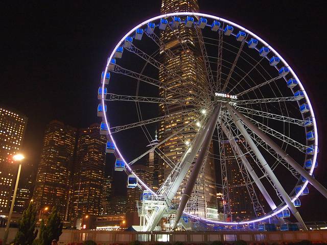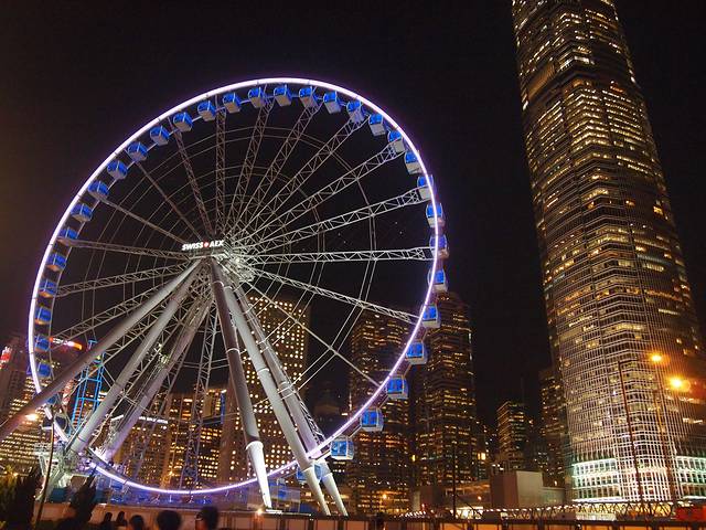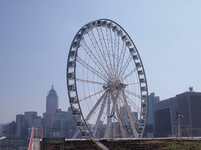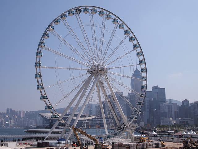 早上去中环码头的时候经过正在施工的摩天轮,壮观。