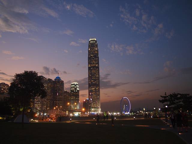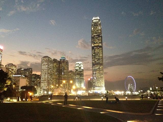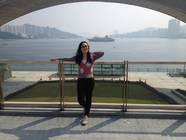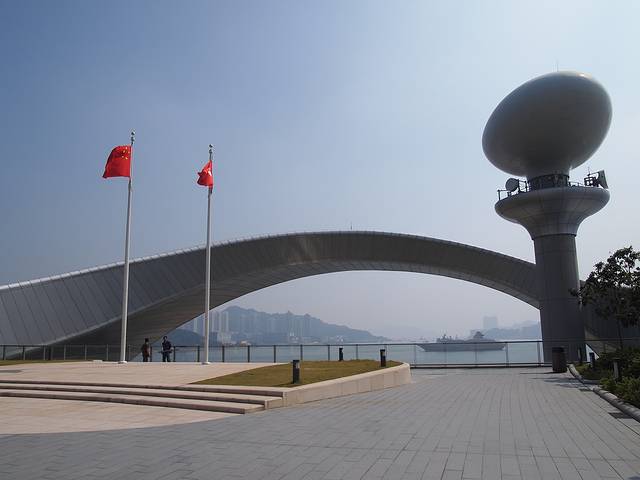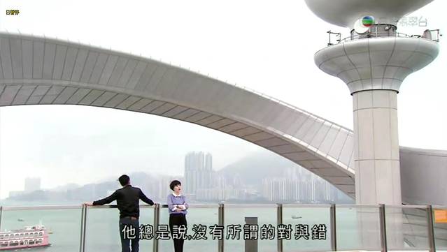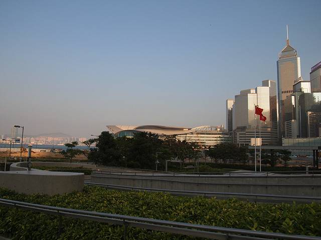 接着我们坐叮叮车去了湾仔会展中心。去了那么多次香港,怎么也要走走《真相》里Keith和Mavis海边谈心的博览道。望着对岸的景色,步行在博览道,《真相》的片段在脑中跳跃。