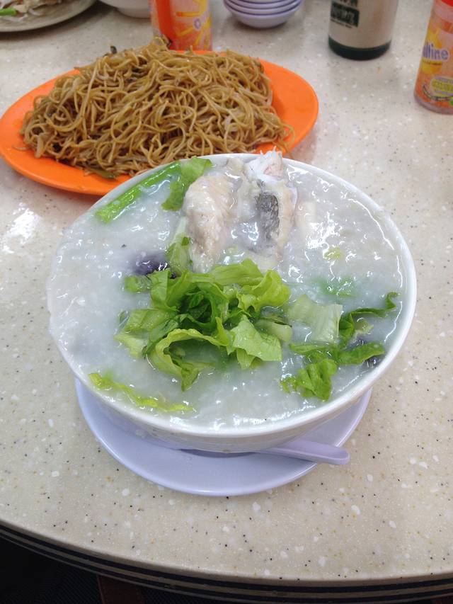 艇皇粥 HKD 29.8 里面有炸鱼皮,鱿鱼好大一只