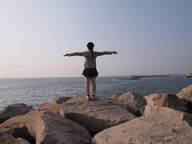 早餐后的第一个目的地是石澳。地铁港岛线筲箕湾站A3出口外巴士总站乘9线巴士往石澳巴士总站,车程约25分种。在快又颠而稳的大巴上看到了远处的石澳海滩,就已心驰神往。到了石澳海滩,没有什么游客,整个大海都像是属于我们。沙子细而软,一不小心海浪打湿了鞋袜,滋味也乐在其中。远处那一堆堆大石块上有多少演员在那里上演过喜怒哀乐呢?
