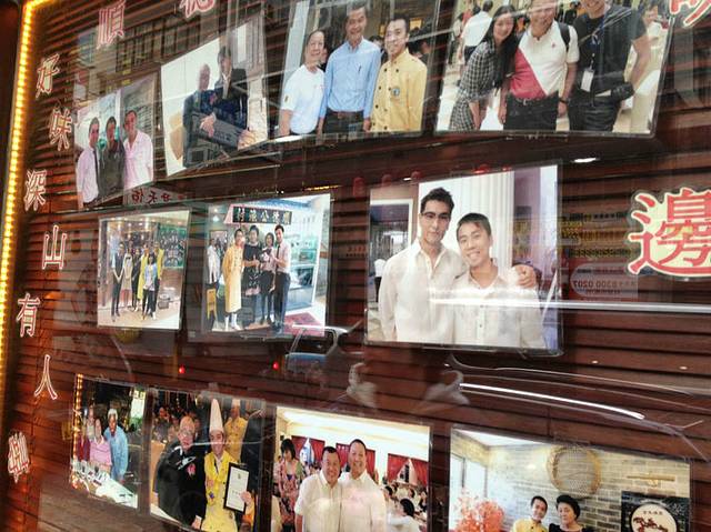 早晨出门准备寻觅早茶,朋友建议去对面的“顺德公渔村”尝尝。看到玻璃窗上贴着老板和明星们的合照,原来不起眼的店家还挺有来头。突然间我们同时发现了陈展鹏的照片,啊啊啊啊啊!尖叫!我们的偶像呀!这次来对了。大堂里都是老人家,看来味道不错。后来知道这家店来头还蛮大的,得到了什么饮食勋章,怪不得偶家偶像都要来尝。梁振英行政长官也曾经是座上客。