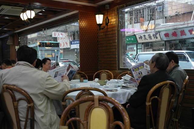 餐厅对面是休憩花园。如此生活化的场景让我想到了TVB电视剧里人们在花园里打太极、下棋的情景。