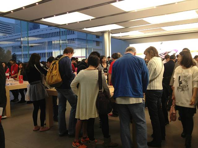 从天际回到中环时经过的IFC苹果店,终于体验到了朋友前一晚说的空前盛况了。密密麻麻都是排队买iPhone5、mini iPad的大陆游客。iPhone5和mini是果断买不到的,只有iTouch5排队的人才不多。