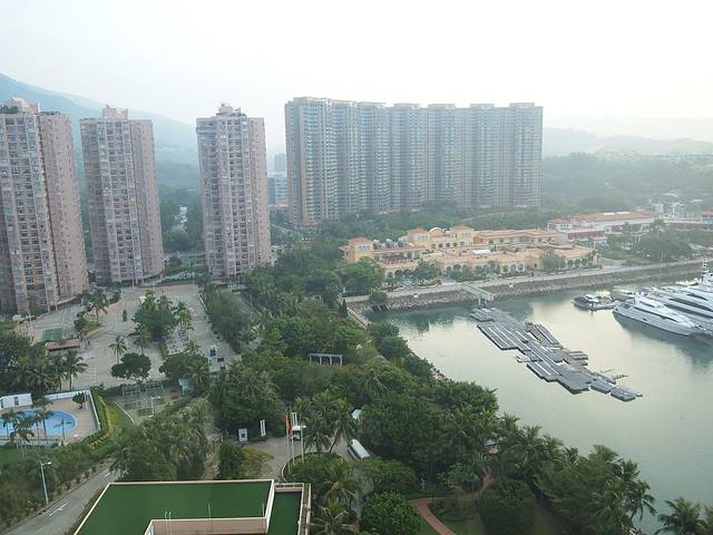 房间右手边望出去橘色房子区域是黄金海岸商场,有超市、茶餐厅、西餐厅。