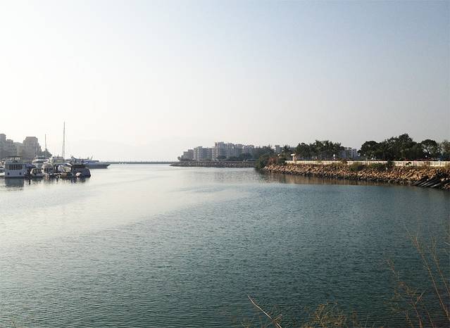 弯曲的区域是海豚广场,早上有不少人晨练。