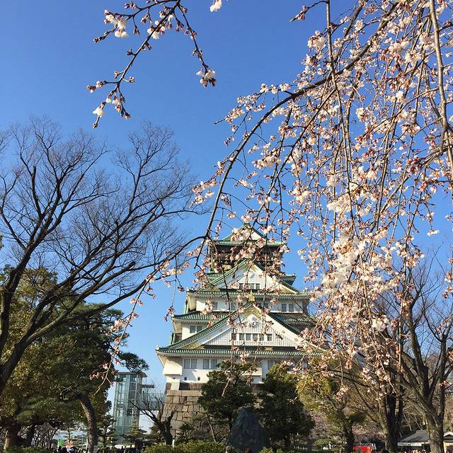 大阪是此行的第一站,3月26日到达的时候,刚好是大阪樱花开放的第一天,所以这里的樱花看到的只是三三两两,大约15%左右开放的模样,即使是这样,在大阪的天守阁看到第一株开放的樱花时,也让我惊喜了很久。